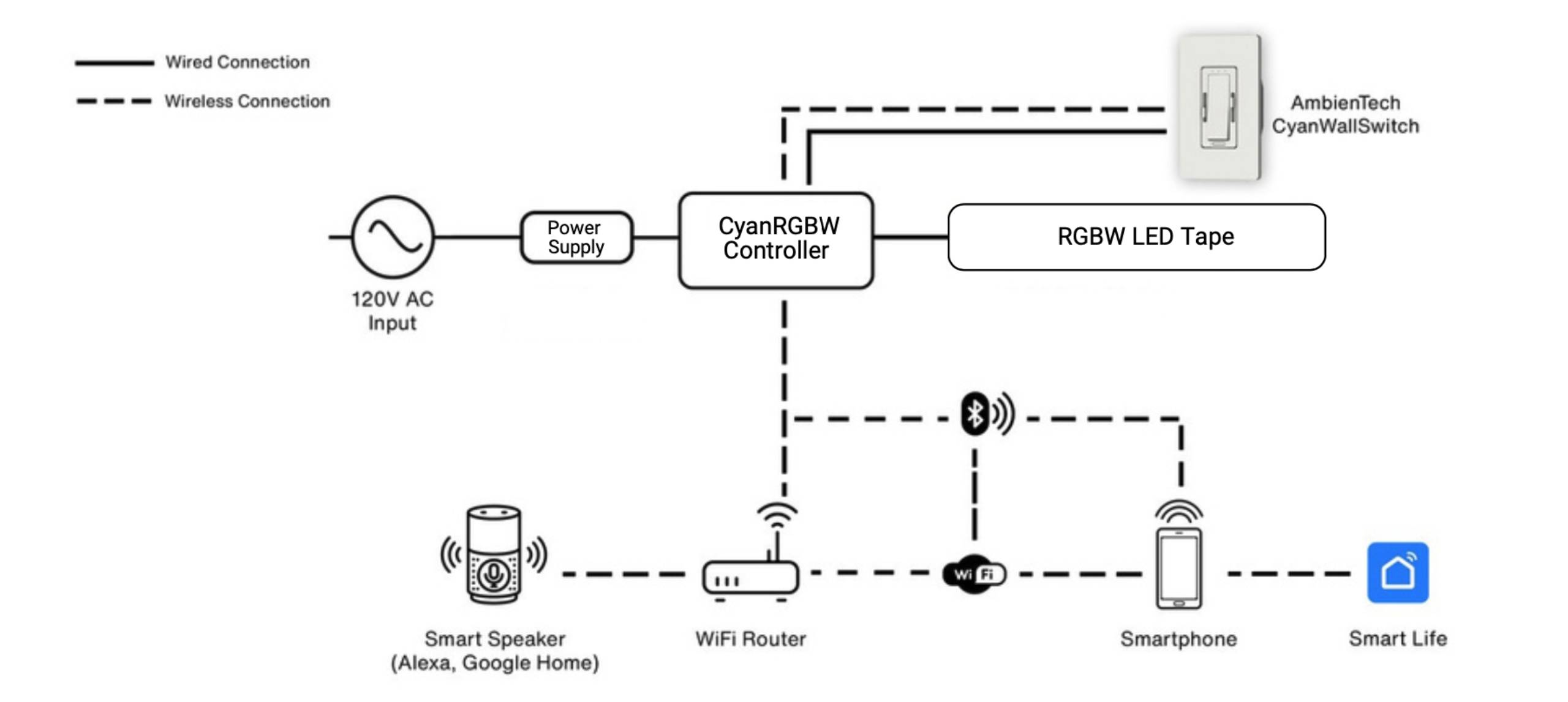 Compatible with the Cyan wall switch, allowing you to control multiple CyanControllers